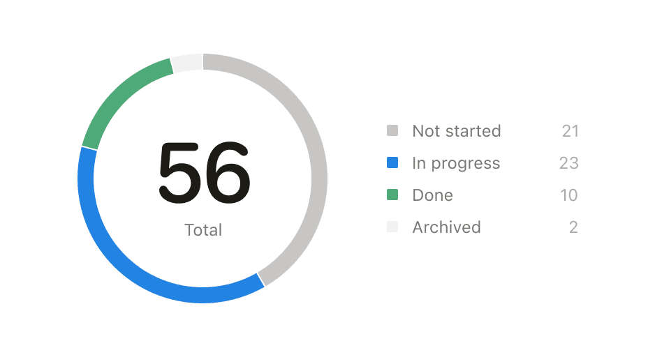 수년 동안 Notion을 체계적으로 정리된 정보의 허브로 사용해왔습니다. 이제 차트까지 더해지니 데이터베이스를 시각적으로 빠르게 확인해 타임라인 내에서 프로젝트 진행 정도와 남은 업무의 비율을 파악할 수 있어요.